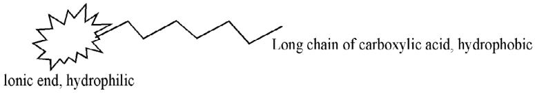 ⇨ Soap is constituted of an ionic part which is hydrophilic and a long hydrocarbon chain which is hydrophobic.