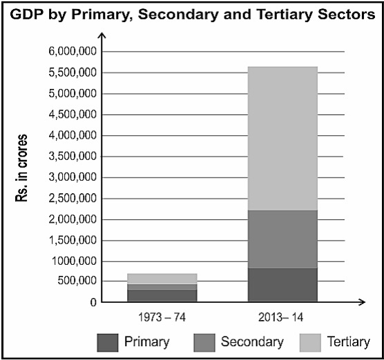 Answer: C. The production in all the three sectors has increased and it has increased the most in the tertiary sector.