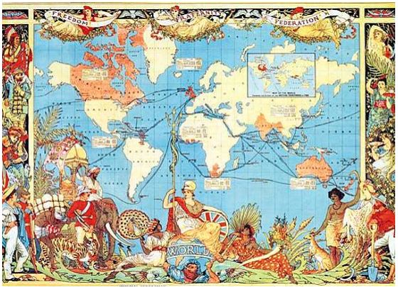 19. Observe the map given below which was used during the 19th century to display the power of Britain.