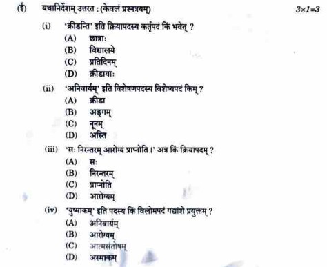 CBSE Class 10th Sanskrit Question Paper (SET-4)