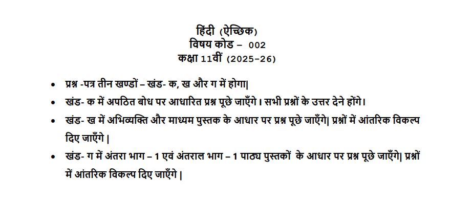 CBSE Class 11th Hindi (Elective) Syllabus 2025-26: FREE PDF Download |