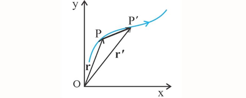 (b) Displacement Vector: When an object is displaced from its position at point P to a new position at point P' (as shown in the above figure), then the vector PP' is called the displacement vector of the object.
