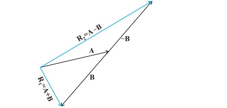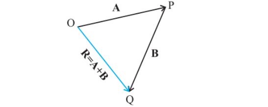 (a) Triangular Law of Vector Addition: Two vectors A and B are represented by two sides of a triangle taken in same order, then the third side of the triangle taken in opposite order, represents the sum of two vectors.