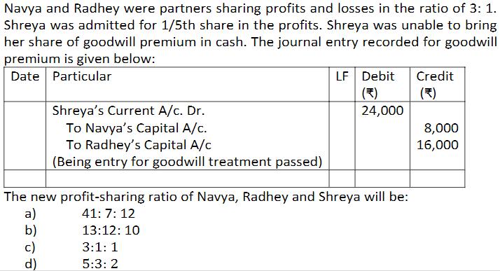 - b) Share of Loss Sohan –₹ 1,000 Mohan – ₹ 1,500