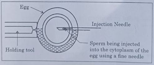 | 3. Observe the schematic representation of assisted reproductive technology given below: Identify the most appropriate technique depicted in the above diagram. (C) ICSI Answer: (C) ICSI (Intracytoplasmic sperm injection) | ||||||||||