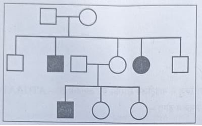 | 9.Study the pedigree chart of a family showing the inheritance pattern of a certain disorder. Select the option that correctly identifies the nature of the trait depicted in the pedigree chart. (A) Dominant X-linked (B) Recessive X-linked (C) Autosomal dominant (D) Autosomal recessive Answer: (B) Recessive X-linked | ||||||||||