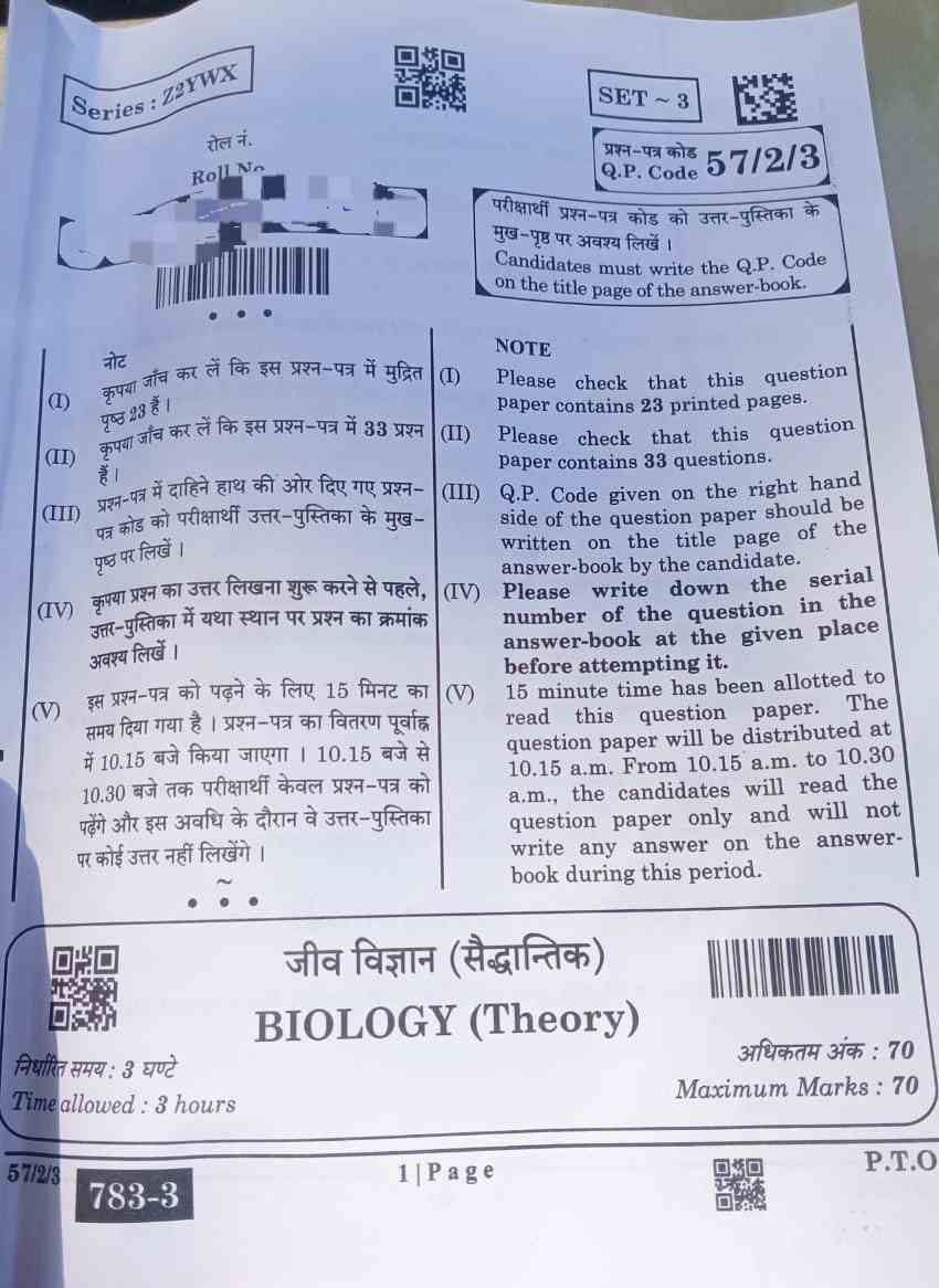 Students appearing for the CBSE Class 12 Biology exam can download the question paper PDF from the link below. This will help students cross-check their answers and analyze their performance.