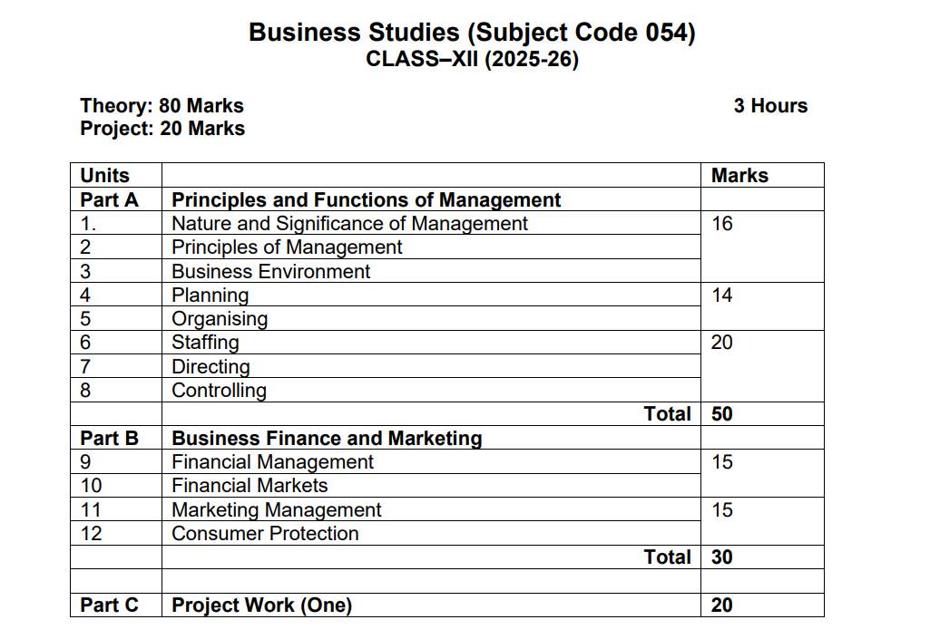 CBSE Class 12 Business Studies Syllabus 2025-26