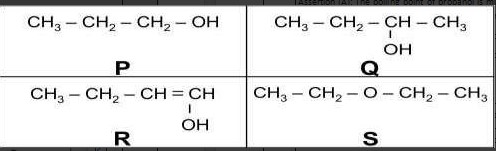 Identify which of the four compounds is the alcohol. A. P B. Q C. R D. S | 1 | ||||||||||