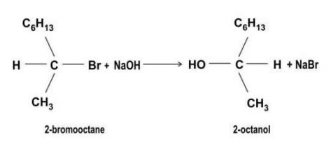 | Q.153 | 2-bromooctane reacts with alcoholic NaOH to give 2-octanol as shown below. (a) Identify the type of substitution reaction mechanism. Justify your answer. (b) What effect will it have on the rate of the reaction if: (i) the concentration of NaOH is reduced by half? (ii) the concentration of 2-bromooctane is reduced by half? | 2 |