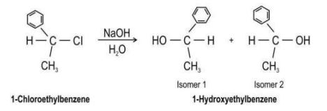 | Q.154 | 1-chloroethylbenzene undergoes hydrolysis by aqueous sodium hydroxide to give a mixture of two isomers as shown below. (a) State if the reaction follows the SN1 or SN2 mechanism. (b) Draw the structure of the intermediate formed in the reaction. (c) Explain why two isomers are formed and which one will predominate. (d) Compare the rate of hydrolysis of 1-chloroethylbenzene with that of 1- 1-bromoethylbenzene under similar conditions. Justify your answer. | 4 |
