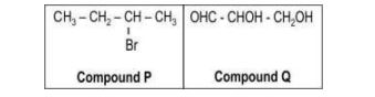 | Q.155 | (a) Both, compound P and compound Q have a chiral centre. (b) (i) 0.5 marks each for any one example such as: - melting point - boiling point - refractive index (ii) direction of rotation of the plane of polarized light [0.5 marks] | 2 |