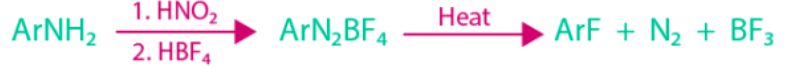 The method of preparing arene-diazonium chloride with fluoroboric acid. In this reaction, the arene diazonium fluoroborate is precipitated and decomposes to yield aryl fluoride on heating.