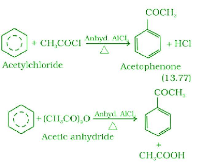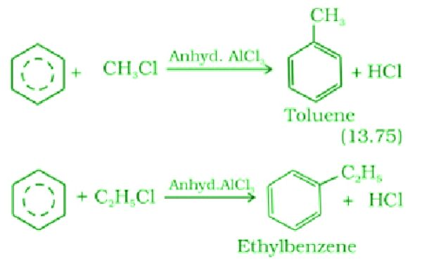 Reaction of benzene with an alkyl halide in the presence of anhydrous aluminium chloride to give Alkylbenzene.