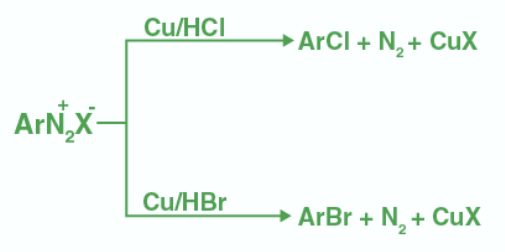 Aromatic diazonium salts react with CuCl or CuBr to yield haloarenes (chlorobenzene or bromobenzene). It's a key step in synthesising various aryl halides from aryl diazonium salts.