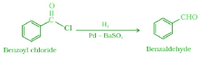 In this reaction, the acid chlorides are converted into aldehydes in the presence of hydrogen gas over palladium poisoned by barium sulfate.