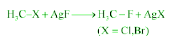 When alkyl chloride is heated with a metallic fluoride like AgF, Hg2F2, or SbF3, alkyl fluorides are formed.