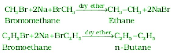 The reaction of Alkyl halides reacts with sodium with dry ether to get hydrocarbons that include the double number of carbon atoms present in the alkyl halide.