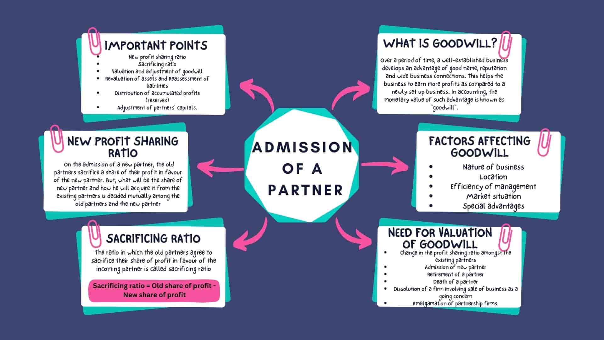 CBSE Class 12 Accountancy Chapter 2, Admission of a Partner Mind Map is presented below as follows: