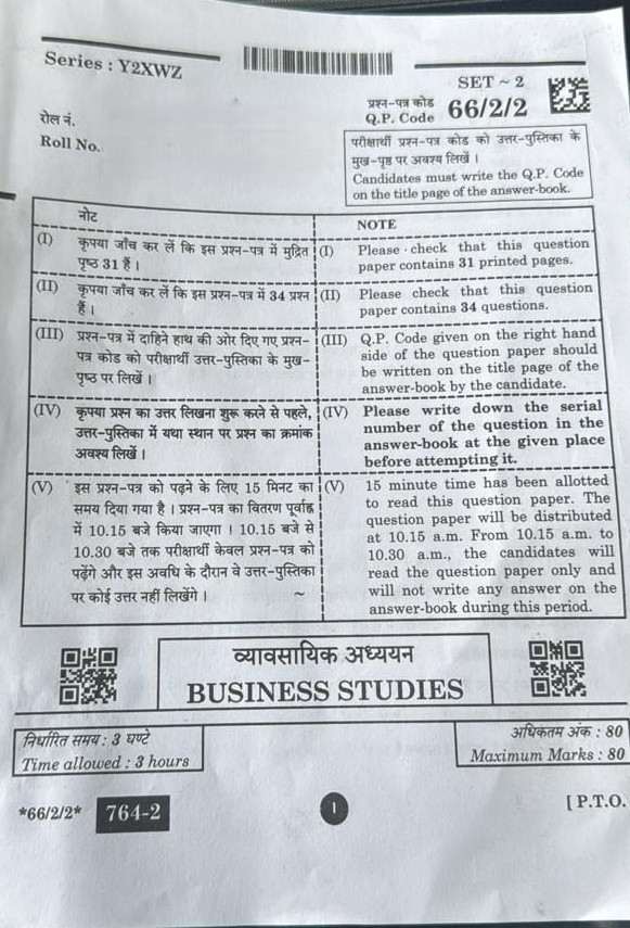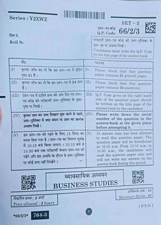 CBSE 12th Business Studies Question Paper 2025 PDF: The Central Board of Secondary Education (CBSE) exams started on February 15, 2025 (Saturday). Here is the free PDF of the question paper of the CBSE Board Class 12th Business Studies exam which was conducted today. Scroll down and check details related to the paper and download its FREE PDF.