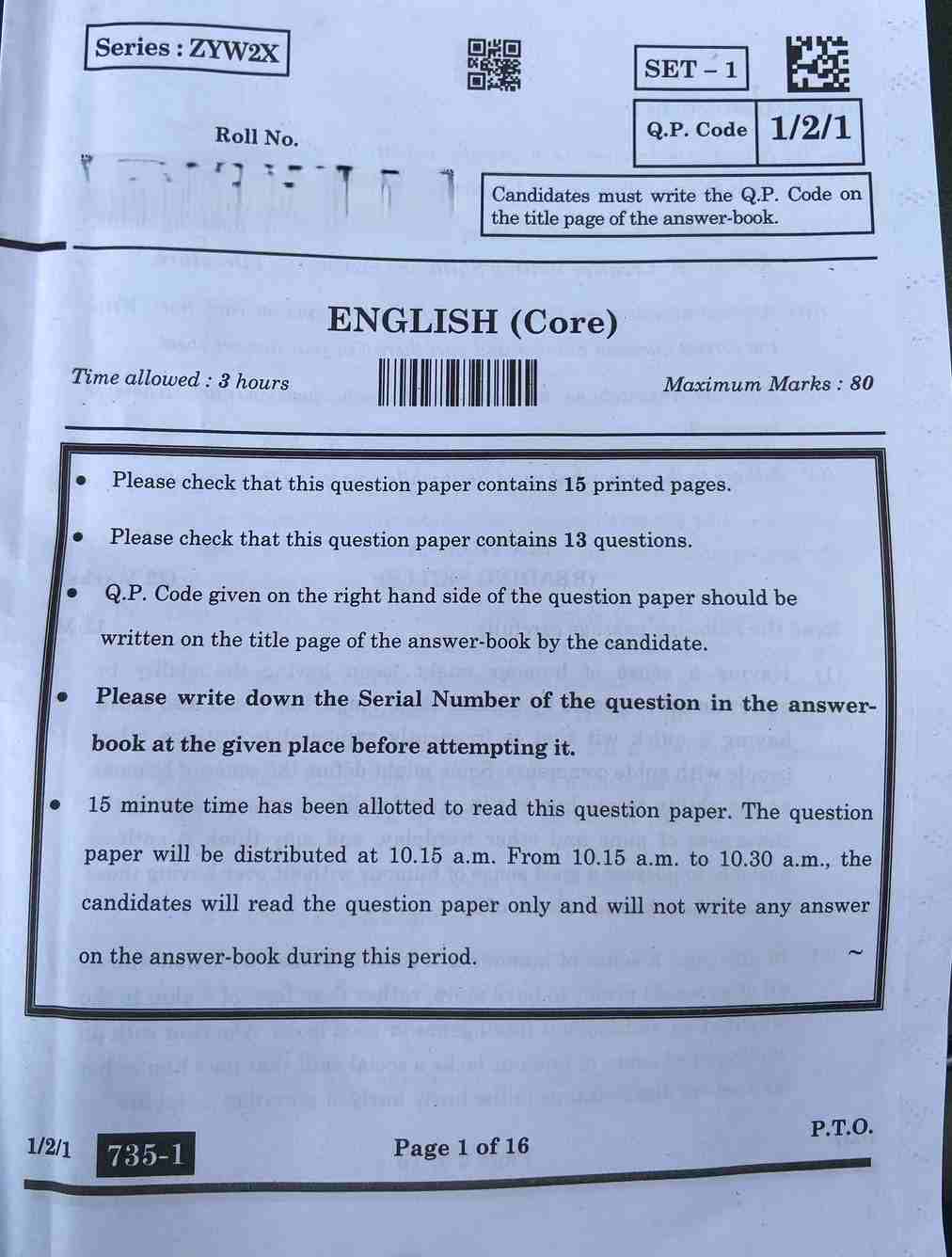CBSE 12th English Question Paper 2025 PDF: The Central Board of Secondary Education (CBSE) exams started on February 15, 2025 (Saturday). Here is the free PDF of the question paper of the CBSE Board Class 12 English exam which was conducted today. Scroll down and check details related to the paper and download its FREE PDF.