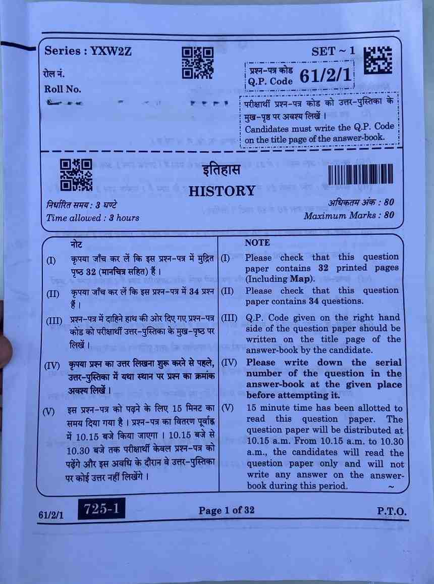 CBSE 12th History Question Paper 2025 PDF: The Central Board of Secondary Education (CBSE) exams started on February 15, 2025 (Saturday). Here is the free PDF of the question paper of the CBSE Board Class 12 History exam, which was conducted today. Scroll down and check details related to the paper and download its FREE PDF.