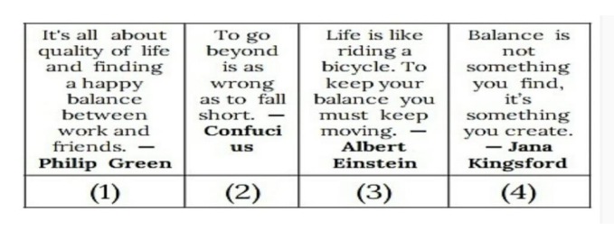 2. Choose the option that best captures the central idea of the passage from the given quotes.