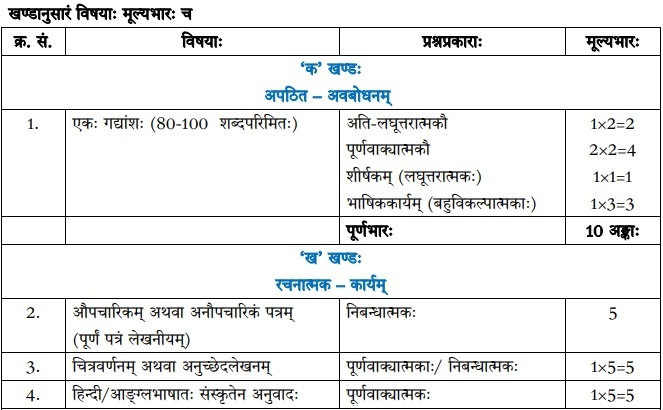 CBSE Class 9 Sanskrit Question Paper Design 2022-23: