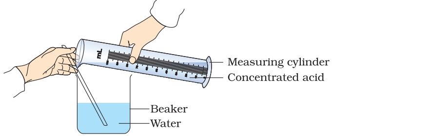 - Acid is diluted by adding water. Never add water to acid.