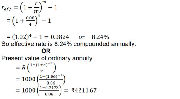 Find the present value of an annuity of ₹1000 payable at the end of each year for 5 years if money is worth 6% compounded annually.
