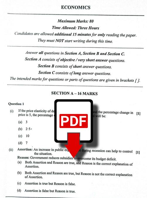 To download the free PDF of ICSE Economics 2024 Question Paper click on the link below: