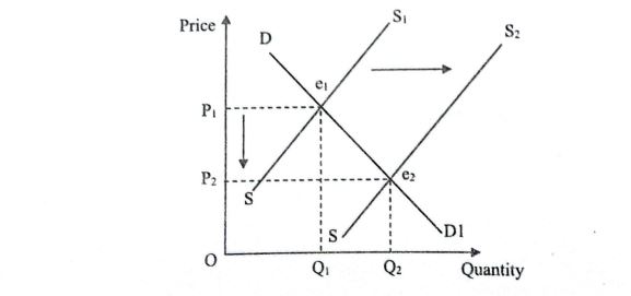 (x) An increase in the number of firms in the market causes a rightward shift in the market supply curve, but the individual supply curve may shift leftwards. Justify the statement.