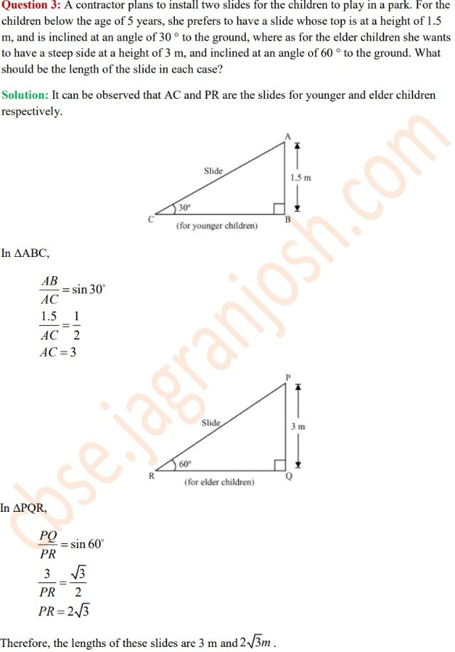 NCERT Solutions for Class 10 Maths Some Applications of Trigonometry - Exercise 9.1