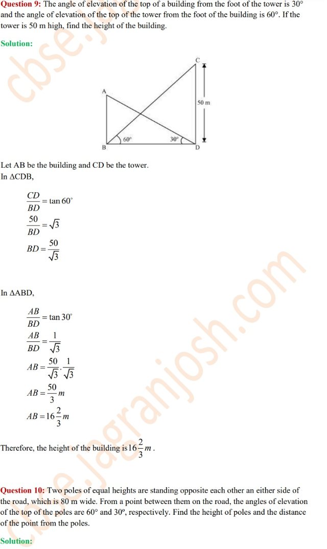 You can check solutions of all questions in Class 10 Maths Exercise 9.1 of Some Applications of Trigonometry from the following link: