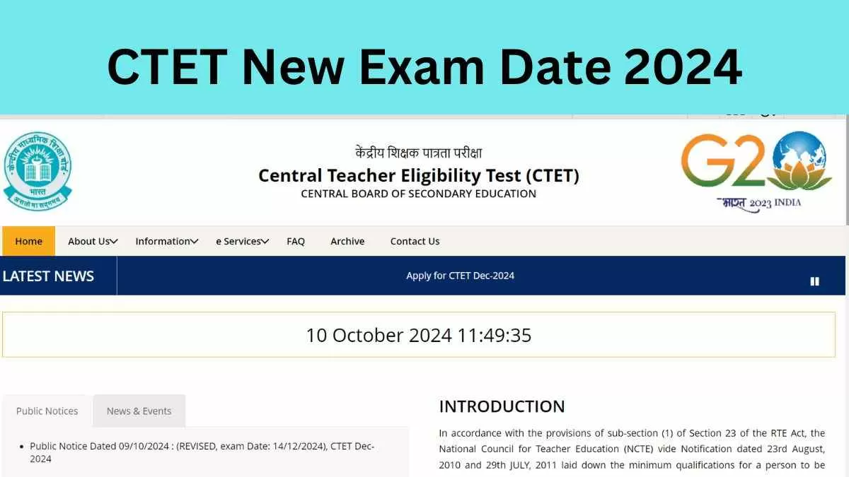 जारी नोटिस के अनुसार, इस कार्यालय के नोटिस क्रमांक संख्या सीबीएसई/सीटीईटी/दिसंबर/2024/ई-73233/संशोधित दिनांक 20.09.2024 के माध्यम से यह अधिसूचित किया गया था कि सीटीईटी परीक्षा का 20वां संस्करण प्रशासनिक कारणों से दिनांक 01 दिसंबर, 2024 के स्थान पर 15 दिसंबर, 2024 (रविवार) को देश के 136 शहरों में निर्धारित किया गया है।