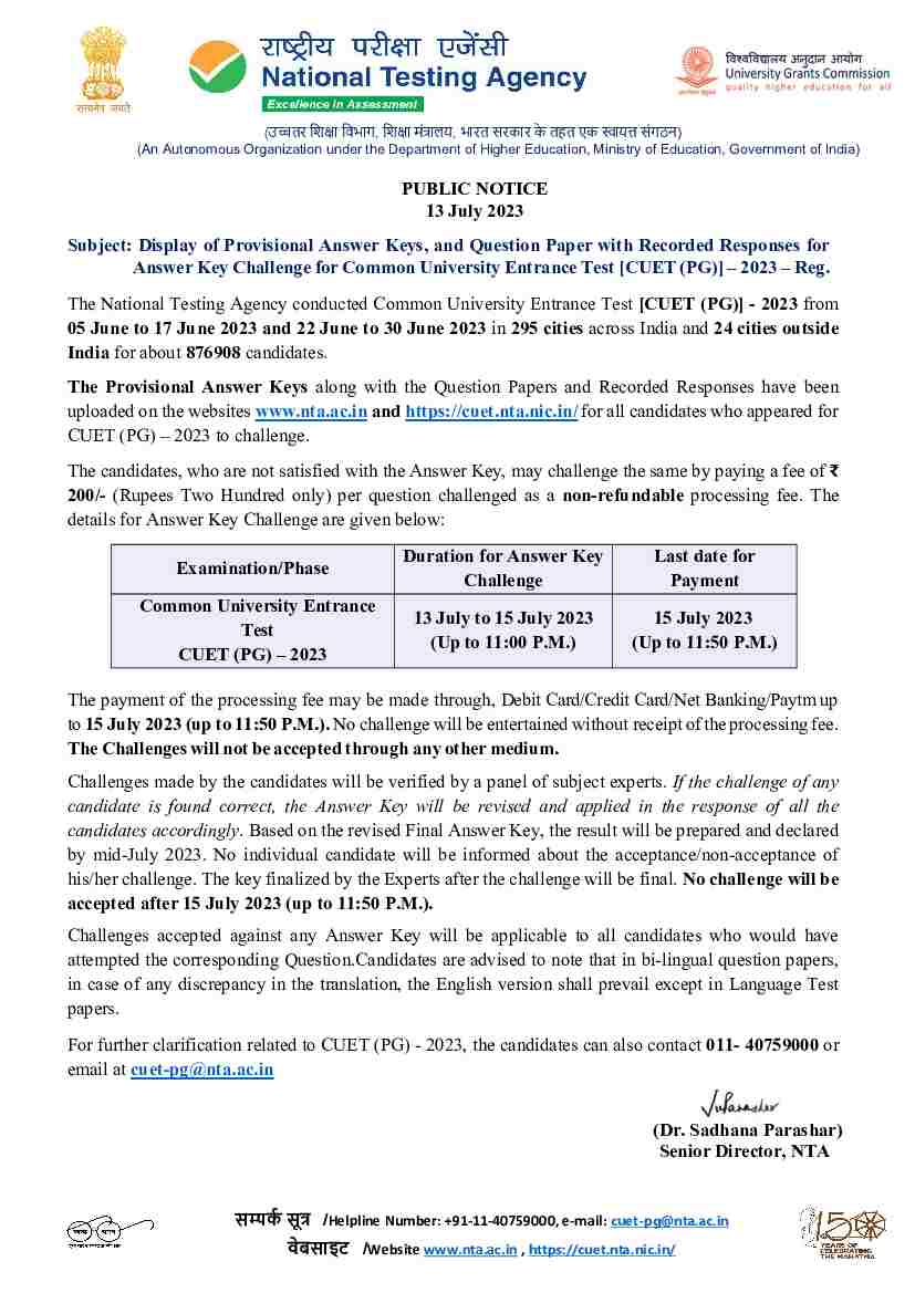 | CUET पीजी उत्तर कुंजी 2023 | 14 जुलाई 2023 |
