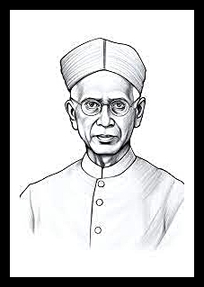 - Illustration of Dr. Sarvepalli Radhakrishnan, representing intellect and cultural heritage.