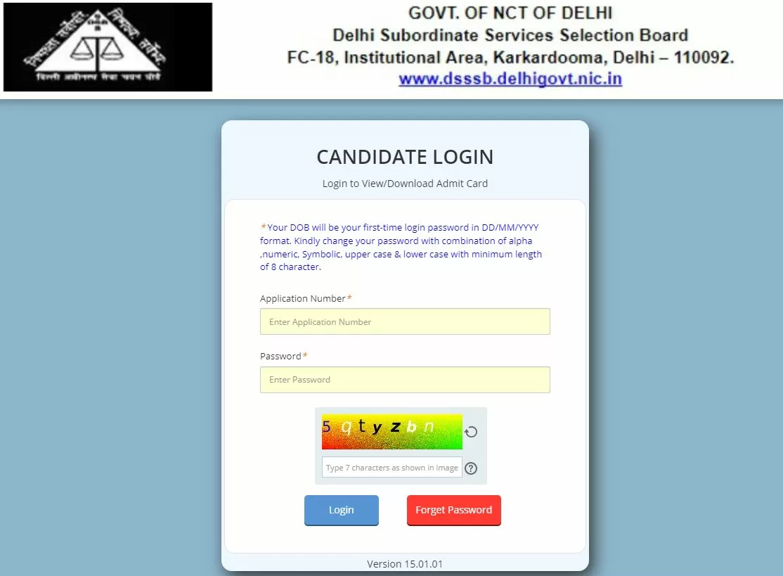 डीएसएसएसबी 2024 एडमिट कार्ड डाउनलोड करने के लिए उम्मीदवारों को रजिस्ट्रेशन संख्या और जन्म तिथि सहित अपने लॉगिन क्रेडेंशियल का उपयोग करना आवश्यक है।