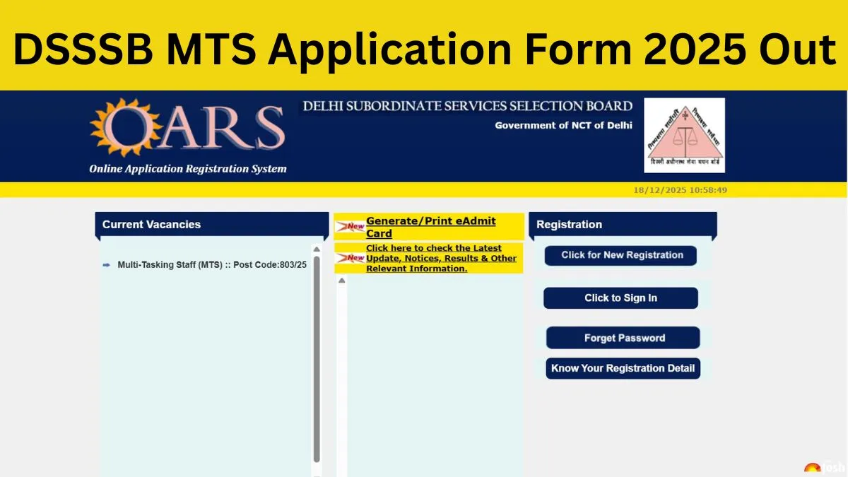 DSSSB MTS Recruitment 2025: The Delhi Subordinate Services Selection Board (DSSSB) aims to fill a total of 714 vacancies for Multitasking Staff. The registration process is underway and will conclude on 15 January 2026. Interested candidates can apply for the post through the official website of DSSSB at dsssb.delhi.gov.in. The selection process comprises two stages: written exam and document verification. Qualified candidates will fall under pay level 1 with basic pay ranging between Rs 18,000 – Rs 56,900.