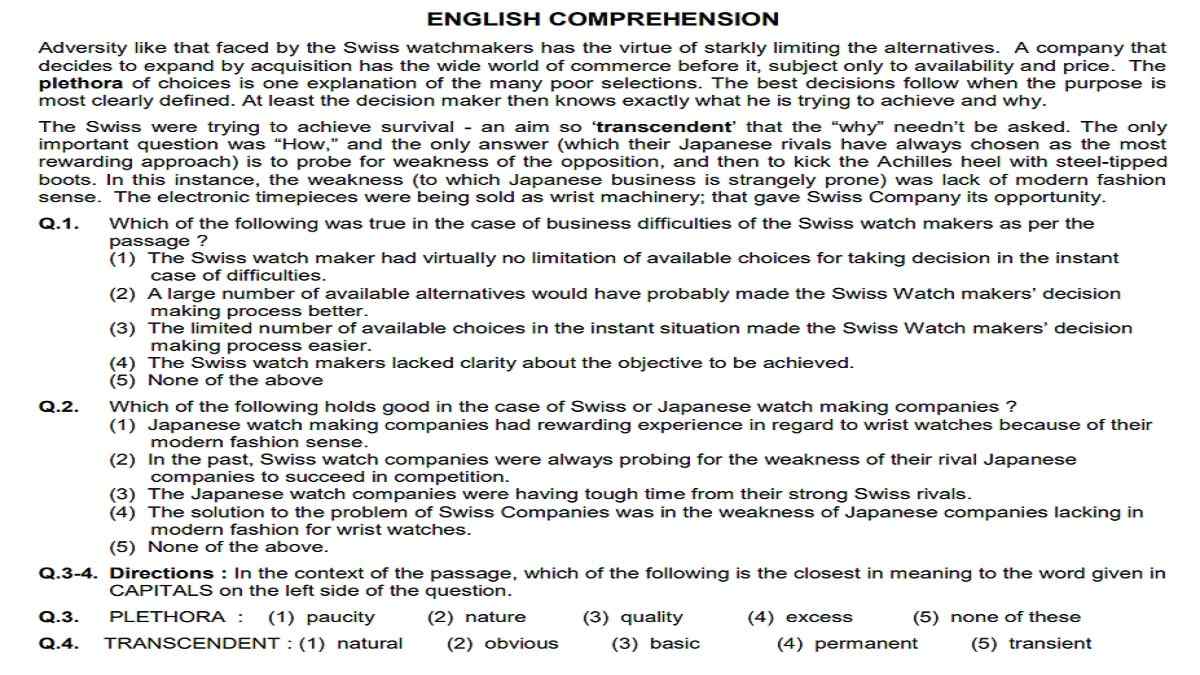 English Comprehension: This section is an easy one for those with good command over Grammar & Vocabulary. Questions from Reading Comprehension, Cloze Test, Fillers, Error Spotting, etc carry high weightage. Mock tests and quizzes can help you in improving your language. Books recommended above are a MUST for taking your English Language skills to a pro level. One has their own freewill to attempt the paper in any order they like however one is advised to start with questions from cloze test, fillers, para jumbles, error spotting, and then reading comprehension related questions. Check below ESIC English Comprehension Model Question Paper.