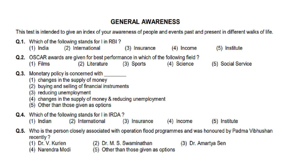 General Awareness: This is the MOST scoring section if the candidates have a maintained a good track of the last 3 to 6 months of current affairs and are more than expert in the static GK. Topics to watch out for: Important appointments, India’s rank in surveys, Union Budget 2021, Economic Survey, Governmental schemes related to the Banking sector, Monthly banking awareness and current affairs, RBI circulars (past 6 months), Economic reforms in India, Banking Regulations Act, RBI Act 1934, Sarfaesi Act 2002, Banking terms, Banking concepts, etc. Check below ESIC General Awareness Model Question Paper.