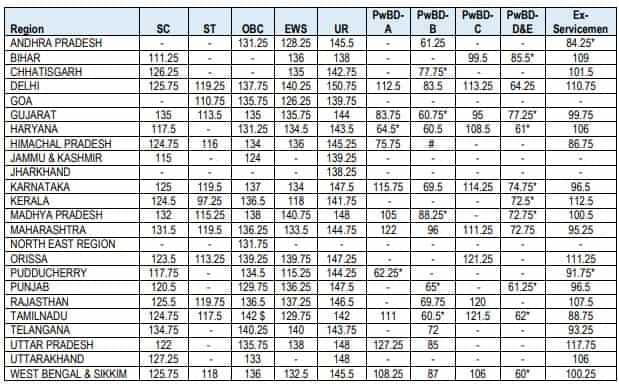The Region wise & Category wise Cut Off marks for shortlisting for Phase – III Computer Skill Test s given below: