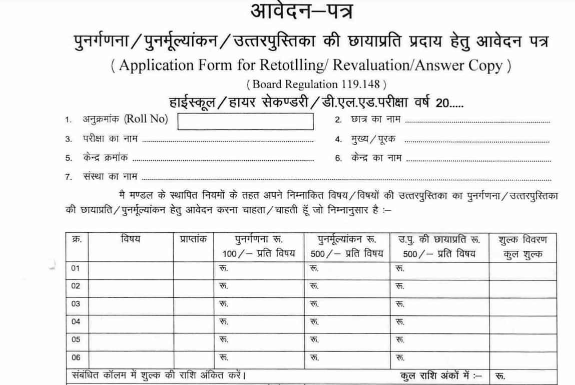 यदि कोई छात्र अपनी आंसरशीट का रिवैल्यूएशन (पुनर्मूल्यांकन) कराना चाहते है तो ऐसे छात्रों को प्रति सब्जेक्ट 500 रुपये का चार्ज देना होगा. इस प्रक्रिया में बोर्ड द्वारा छात्र की आंसरशीट को पुनःचेक किया जाता है.