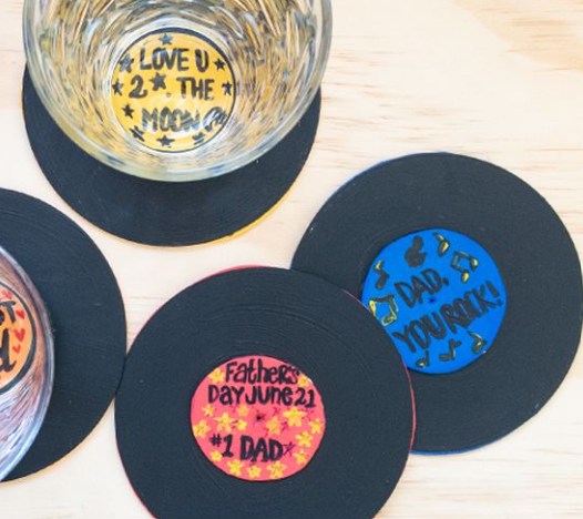 You can turn some craft foam into Dad's favorite shapes or designs. These can double as coasters, so they're not just for decoration — they're useful too! It's a fun and practical gift that Dad will enjoy using.