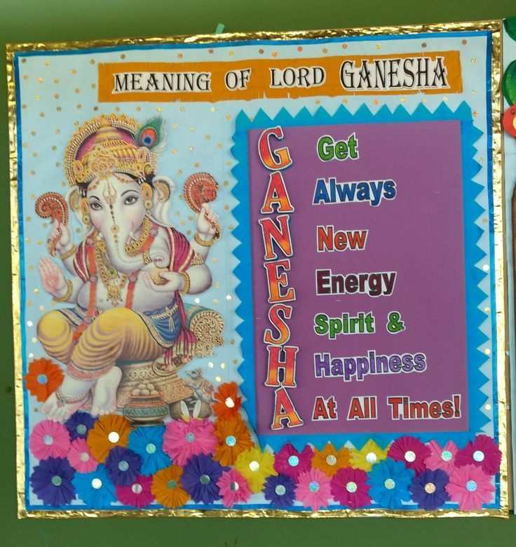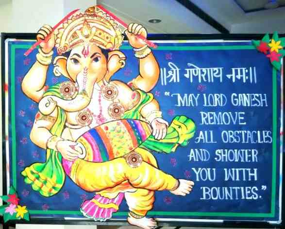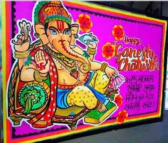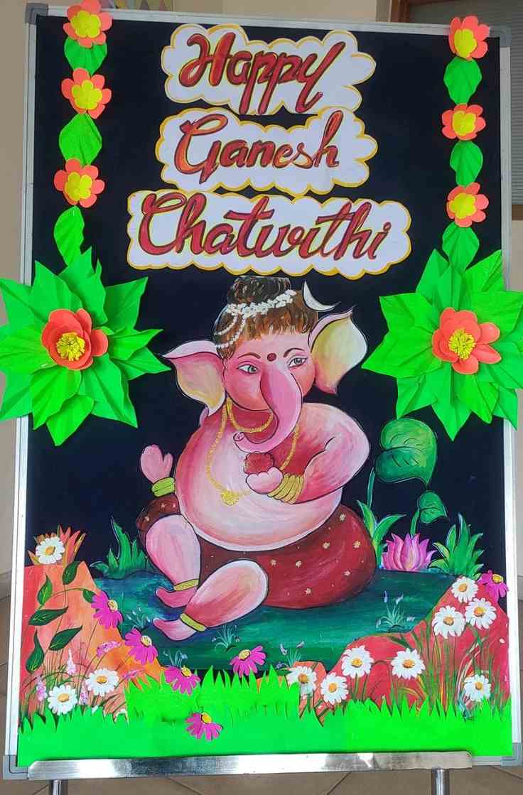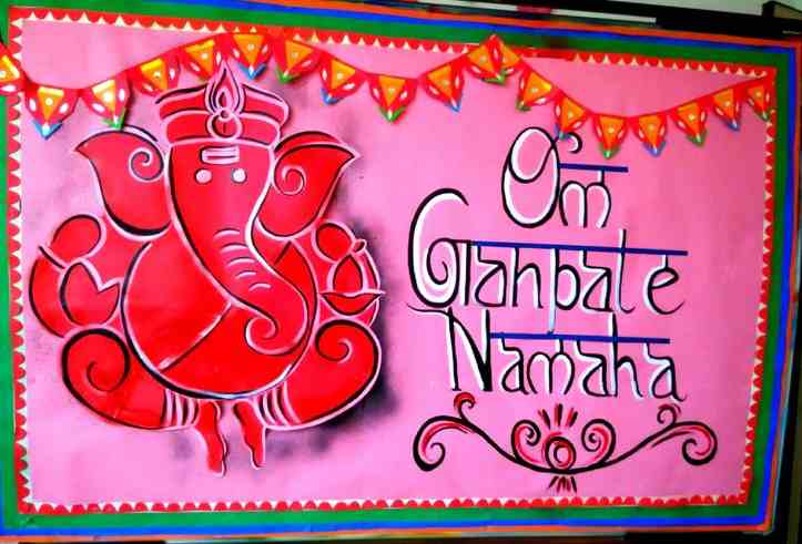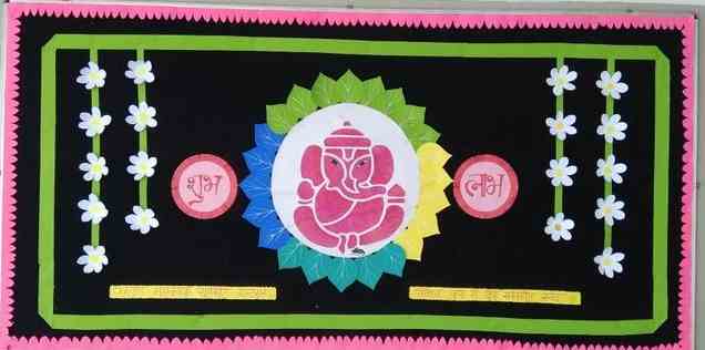 2. How lovely is this idea! Write Happy Ganesh Chaturthi on sheets, then cut them out in a pattern and colour them. You can decorate with flowers made out of paper. This display will portray your artistic skills in the best way. Don’t forget to put an endearing picture of Lord Ganesha on the board.
