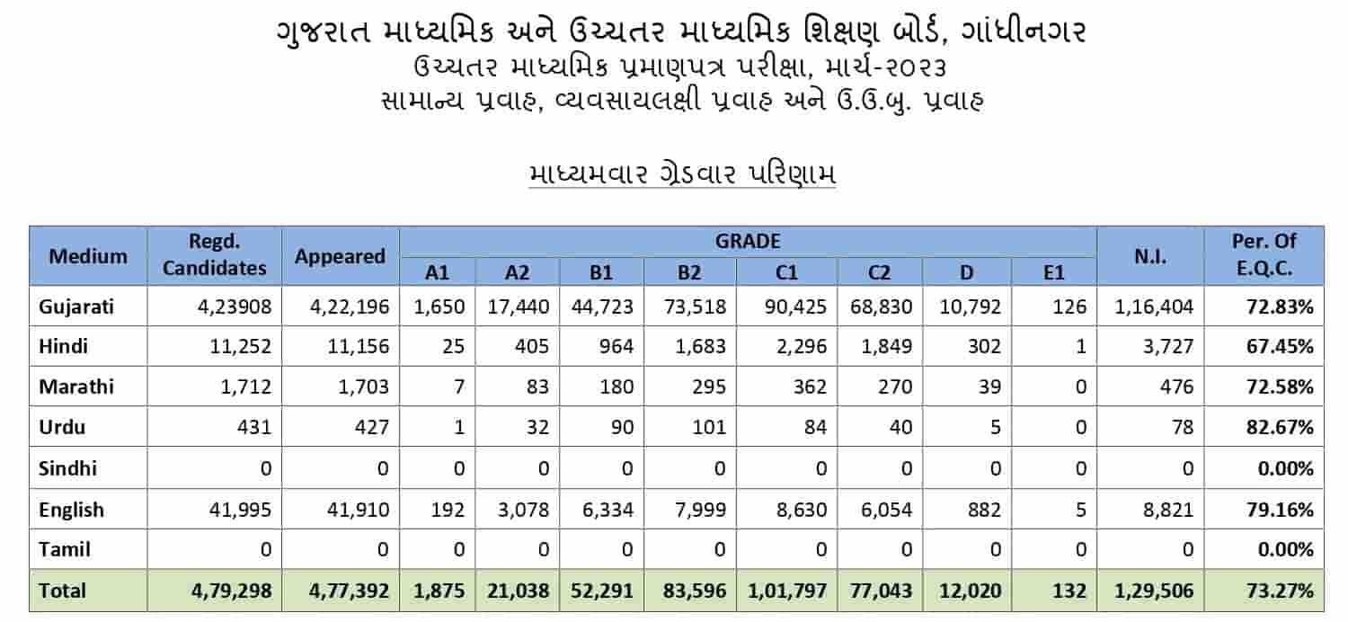 ગુજરાતનું 12મું પરિણામ: GSEB HSC Result 2023 Arts, Commerce Overview