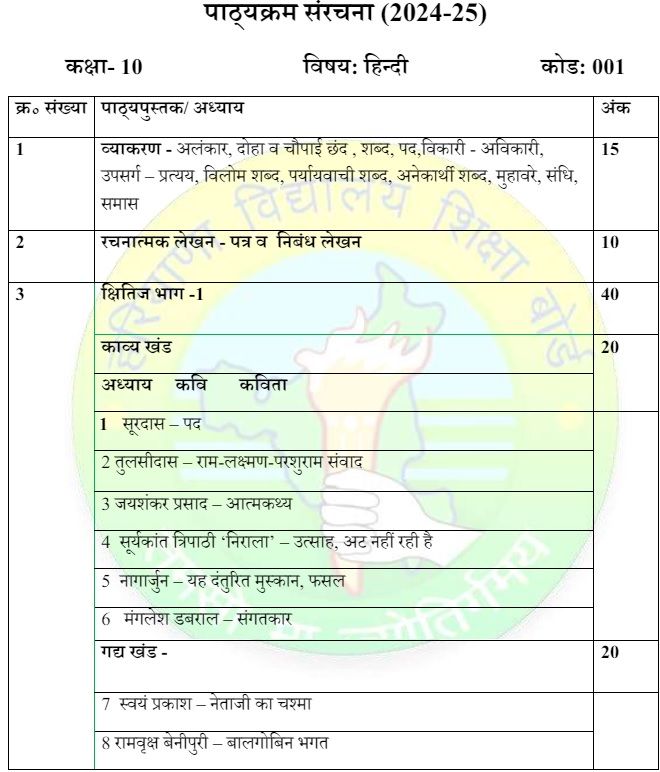 HBSE Class 10 Hindi Syllabus 2024-2025