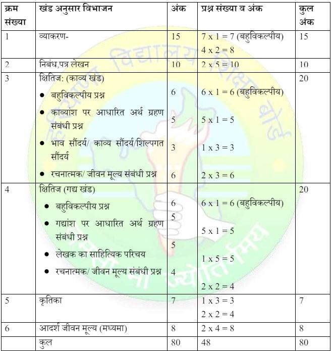 Chapter-wise marking scheme for HBSE Class 10 Hindi is mentioned below based on which the annual examination will be conducted.