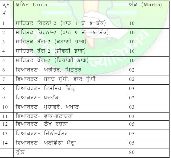 The type and format of questions for the annual Punjabi exam will be as per the following pattern: