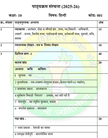 HBSE 10th Hindi Syllabus 2025-26: Detailed Course Structure (Book-Wise Weightage)